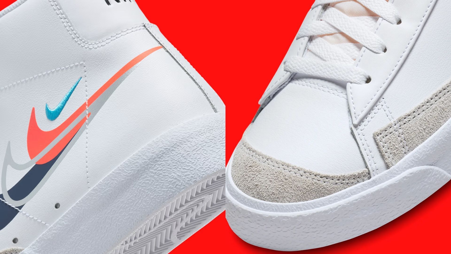 Nike Blazer Mid '77 "Quadruple Swoosh" sneakers feature four colorful swooshes