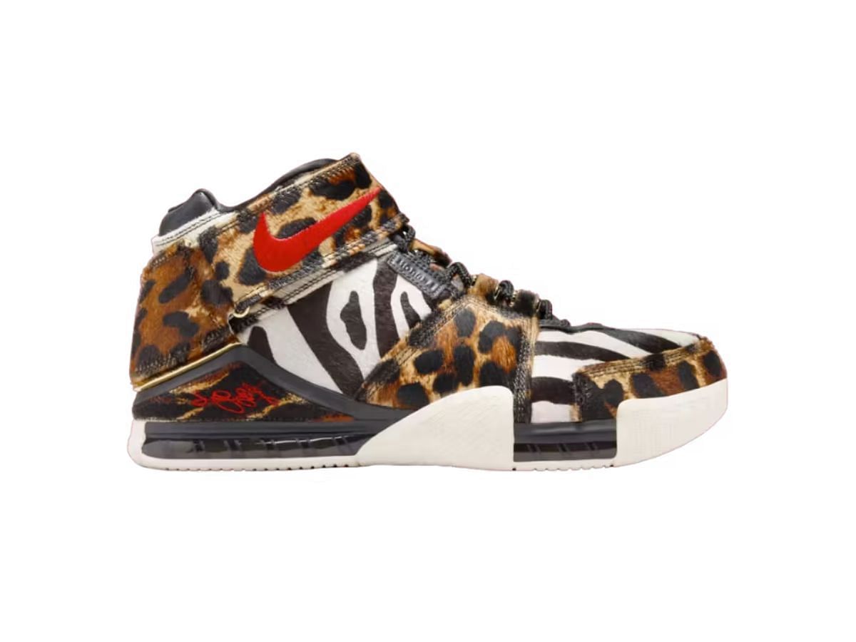 The latest brainchild of the collaborative effort of the basketball phenomenon and the shoe giant comes in a bold and intimidating colorway. The sneakers feature animal skin-like patterns, representing Lebron's power and dominance on the court.