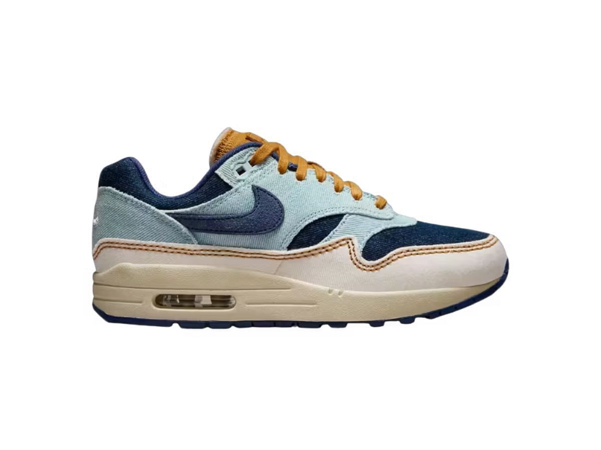 The iconic Air Max silhouette has been dressed in various denim colorways for a trendy and fun design. This fresh take on this unique footwear offers a sense of personal style and individuality through the material's versatility. The pale ivory and navy blue primary color scheme also creates a balanced and harmonious design.