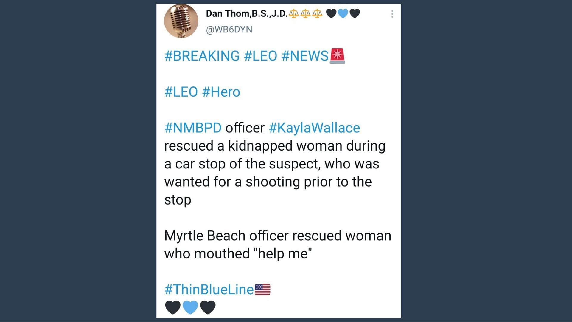 Following Bates' arrest, North Myrtle Beach police department praised Officer Kayla Wallace, writing:
