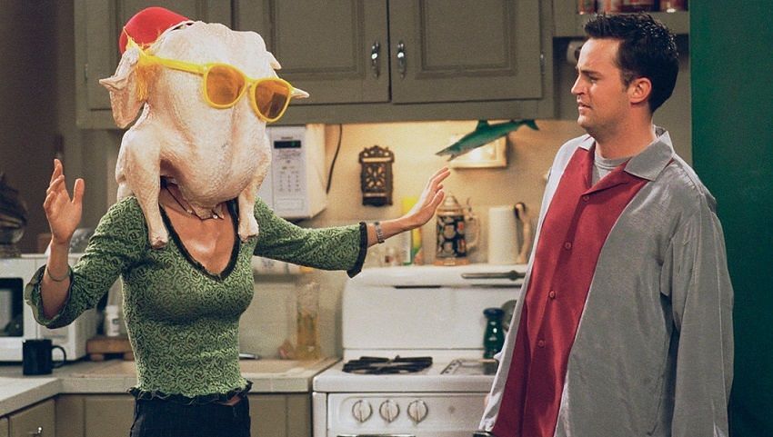 The writer of the Friends episode, Greg Malins, discussed an intriguing aspect of ‘The One With All the Thanksgivings’. " We wanted --- I especially wanted --- a real turkey. Just because I wanted Matt to have to put his head into a turkey. The prop department did their due diligence, but it didn't exist. The biggest turkey ever for sale is not big enough to fit a human head. I remember them coming to us and saying, 'We have to build it.' So we made it out of foam."