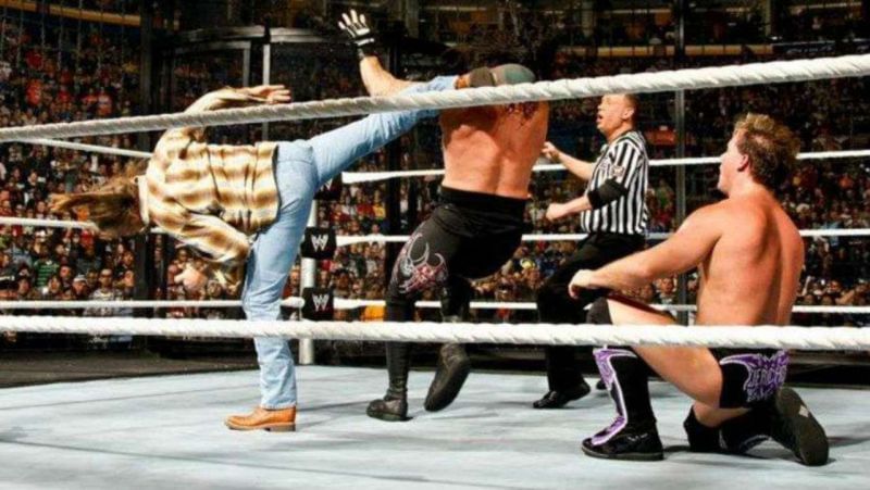 The two never really had a proper match, though Goldberg did spear and Jackhammer Jericho. It seems like Bill Goldberg has a long memory because when he saw an opportunity to devastate Chris Jericho in the Elimination Chamber, he took it. Jericho would crash through the glass barrier of an elimination pod in a spectacular moment.