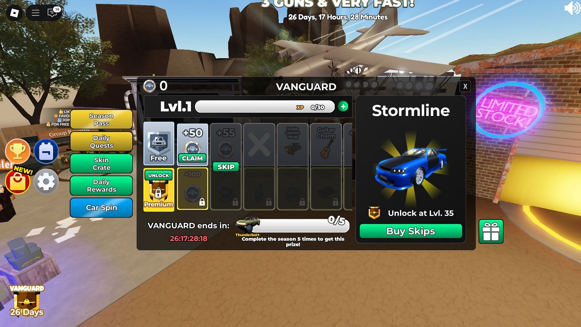 If you require additional resources and cosmetics, you can spend 600 Robux to acquire the Premium tier. The Premium tier grants you better rewards per level-up and serves as an addition to the Free tier instead of a replacement. Upon reaching the final level of the Premium tier, you can unlock the Stormline car.