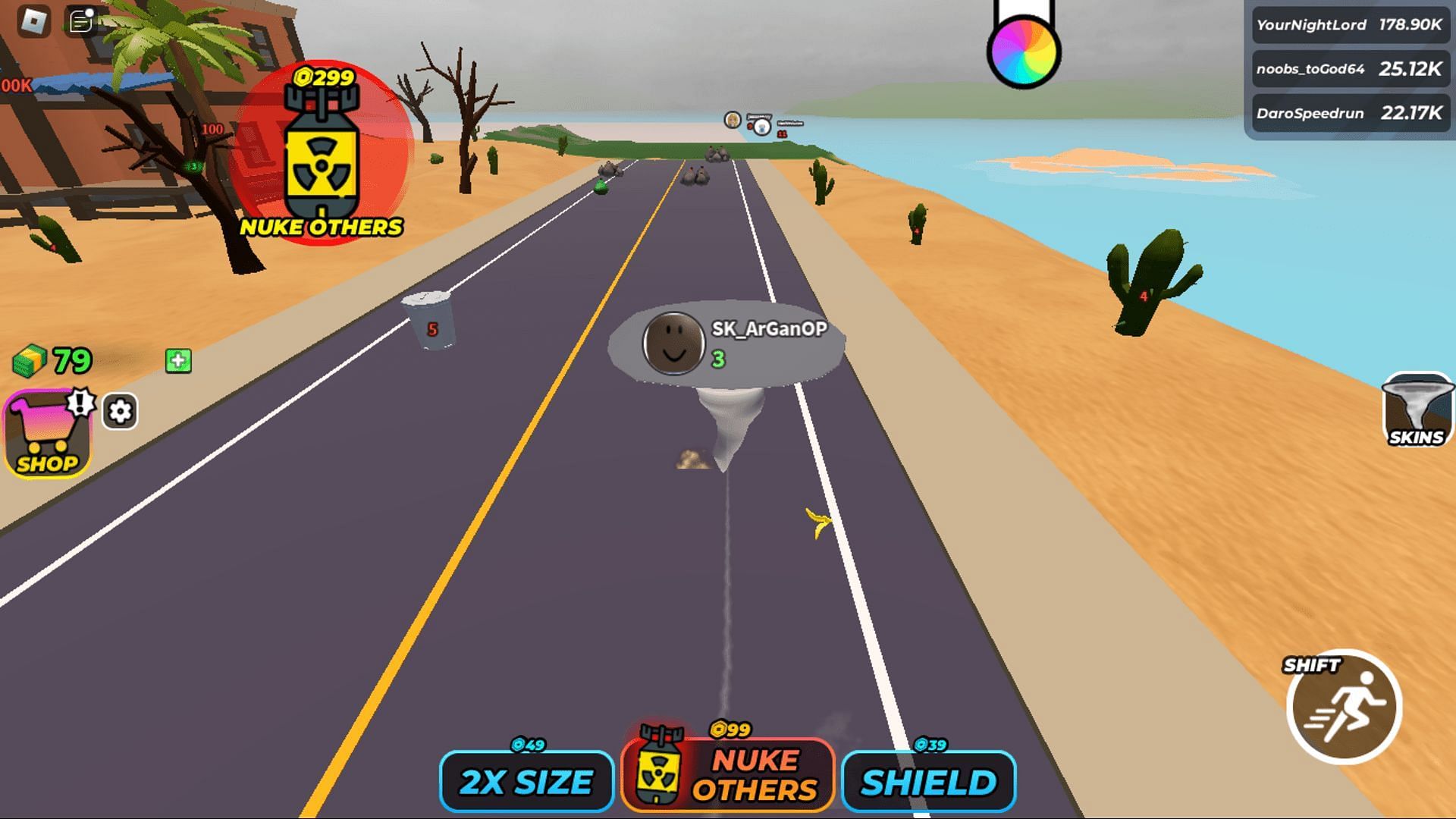 - Shift: Use this key to sprint or make your tornado move faster for a short duration.