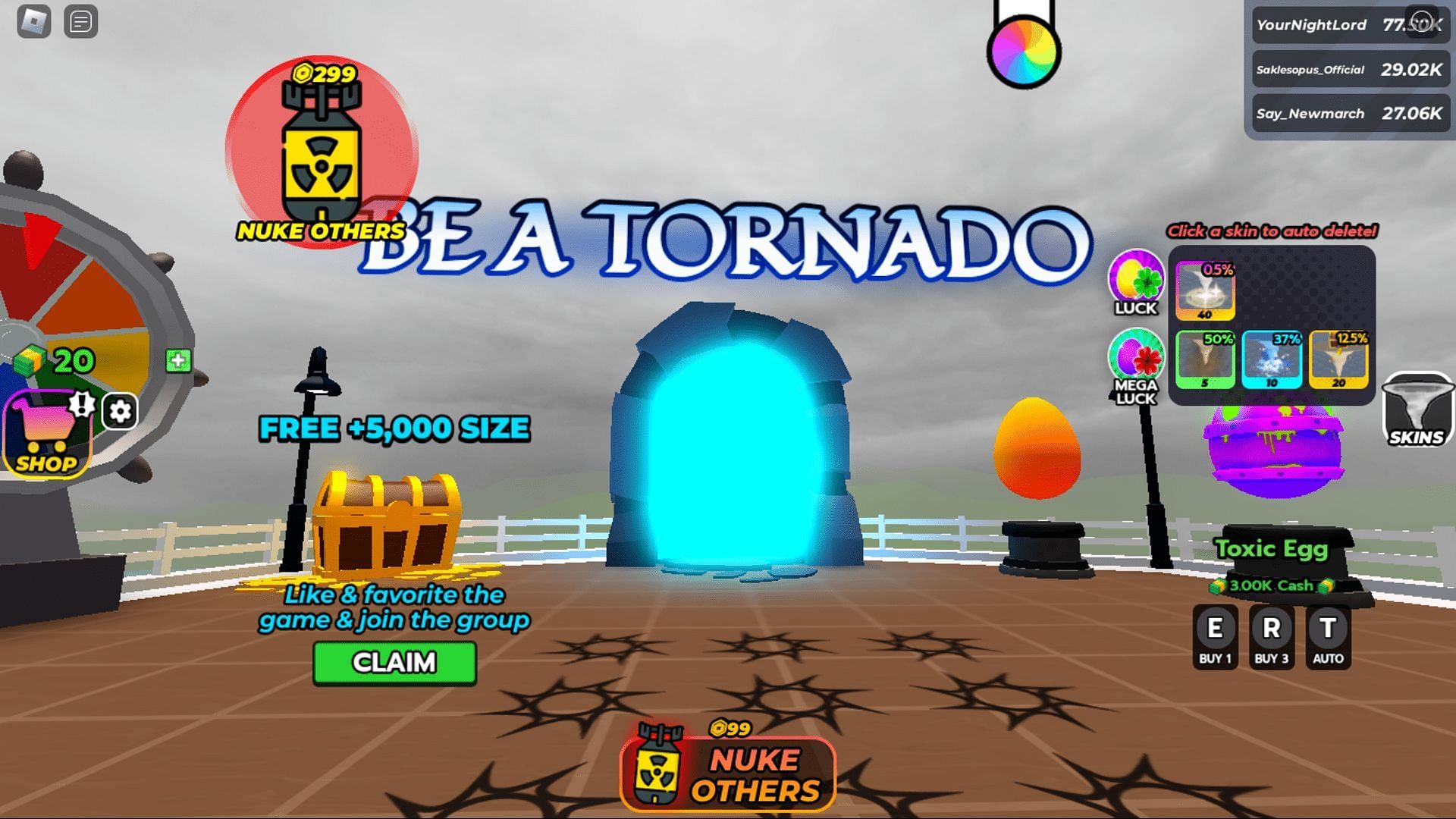 After going through the portal, players will find themselves as tornados in a meticulously crafted digital world ruled by tornados. This is where their journey to the top of the server leaderboards starts.
