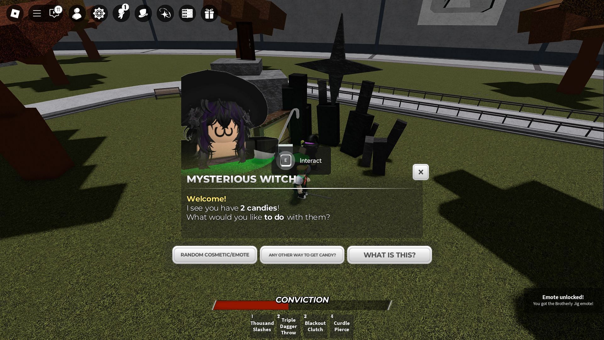 - Free emote code! Type !code halloween in the game to get a free emote. redeem it by typing !code halloween or by talking to the witch NPC (if you're on the console talk to the witch NPC).