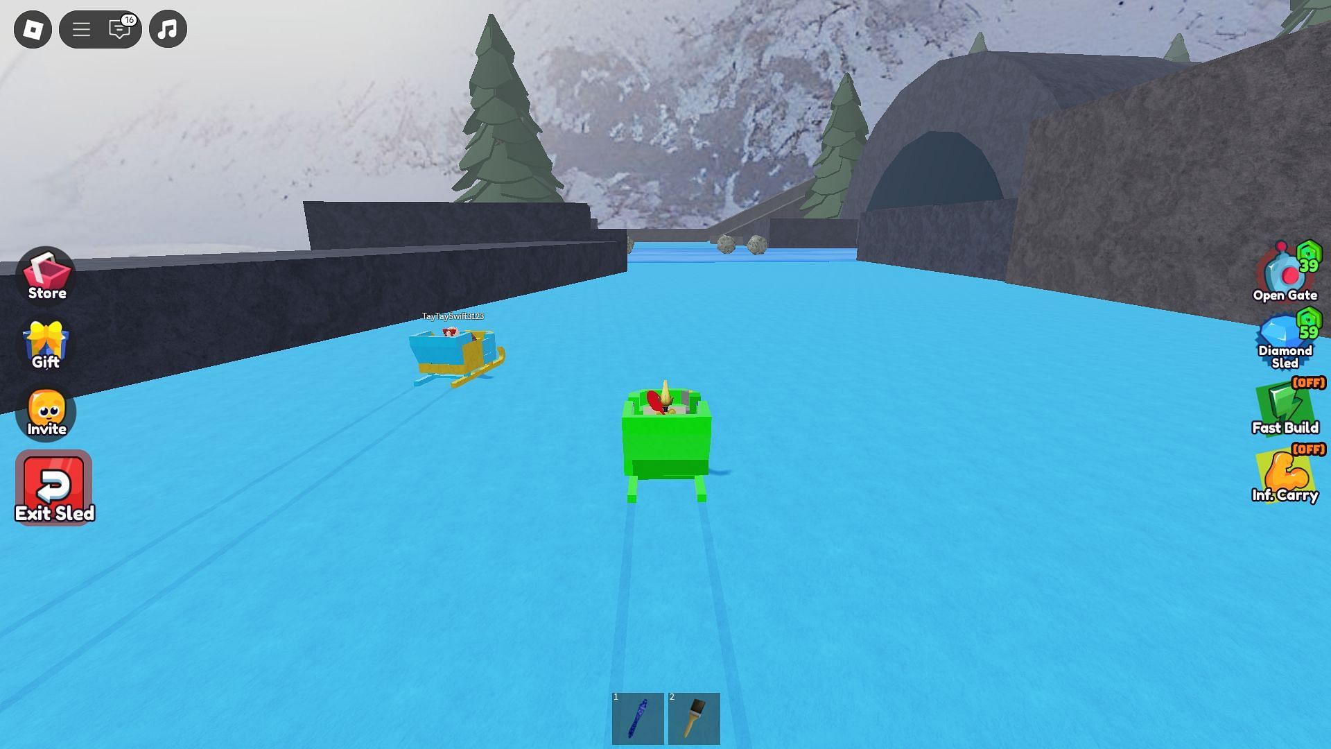 After launching this Roblox title, you will spawn in an area with multiple players. You can find a slope heading downwards just opposite of the spawn point. While this is the track you have to navigate through, your first order of business is to build a sled.