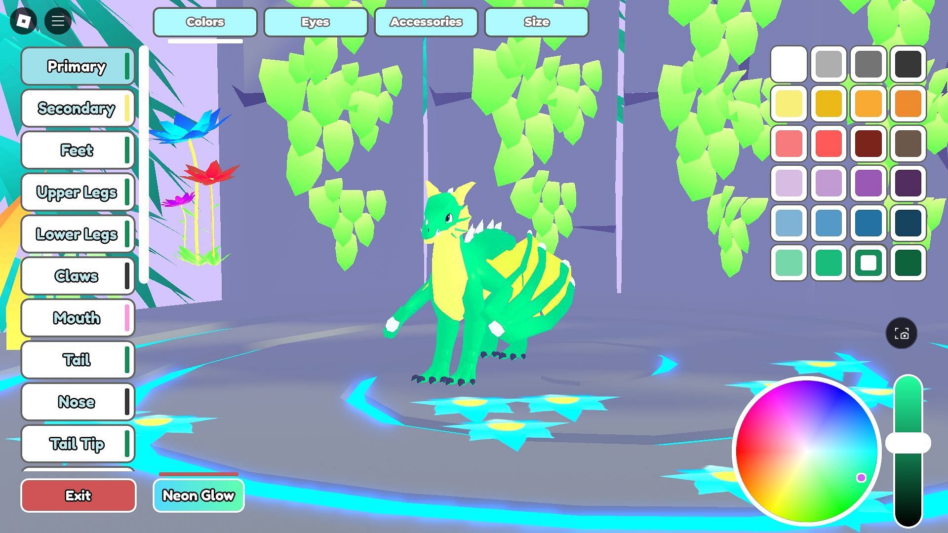 You can change its colors, eye shape, size, and accessories. Nearly every part of its body can be recolored, and you can select from several color swatches.