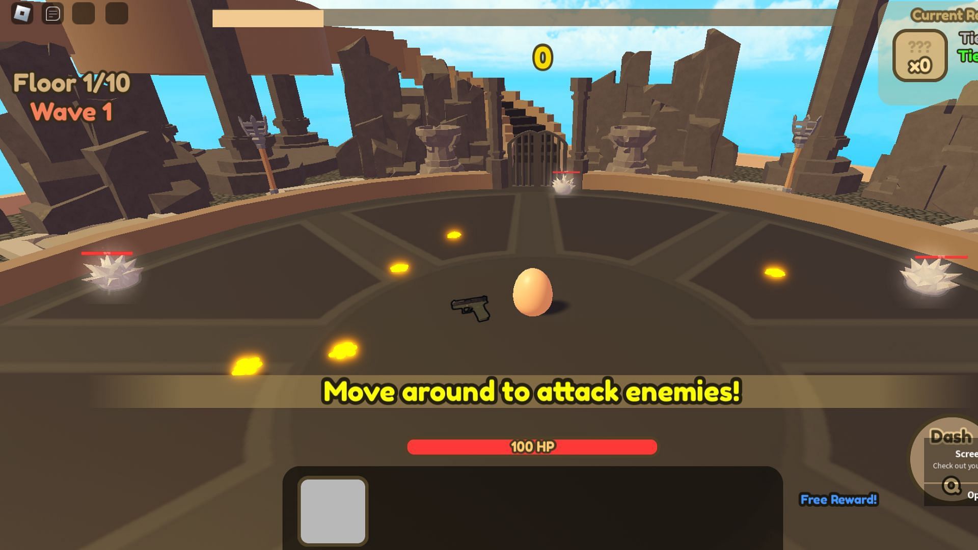 In this Roblox game, you play as an angry egg that starts its journey with a basic pistol. You are thrown in the middle of a circular arena wherein, you have to tackle and defeat the enemies. It should be noted that your in-game death is permanent.
