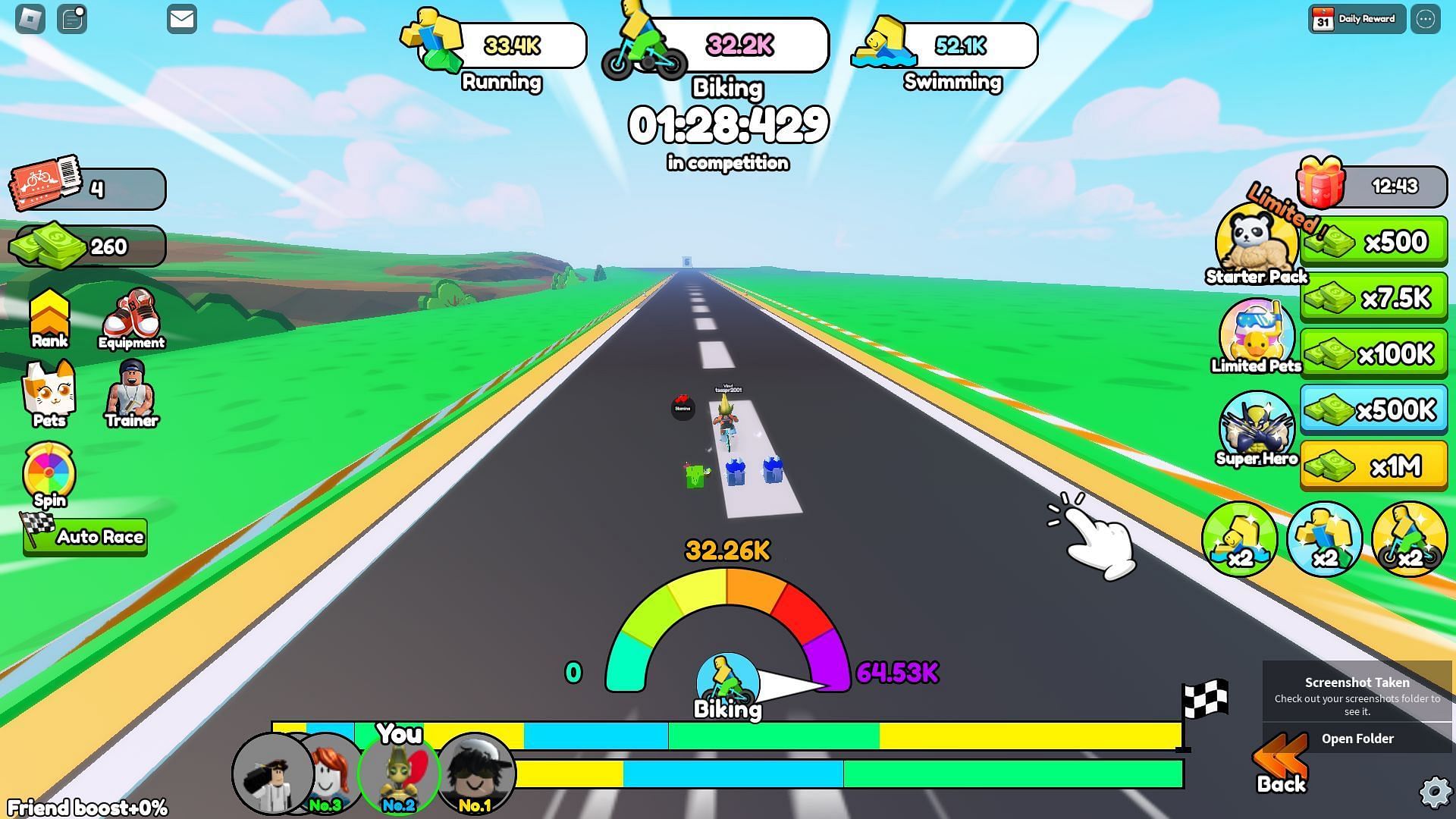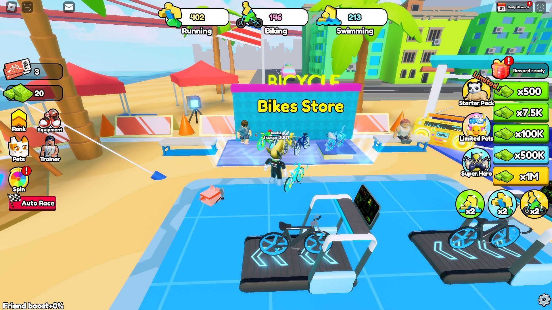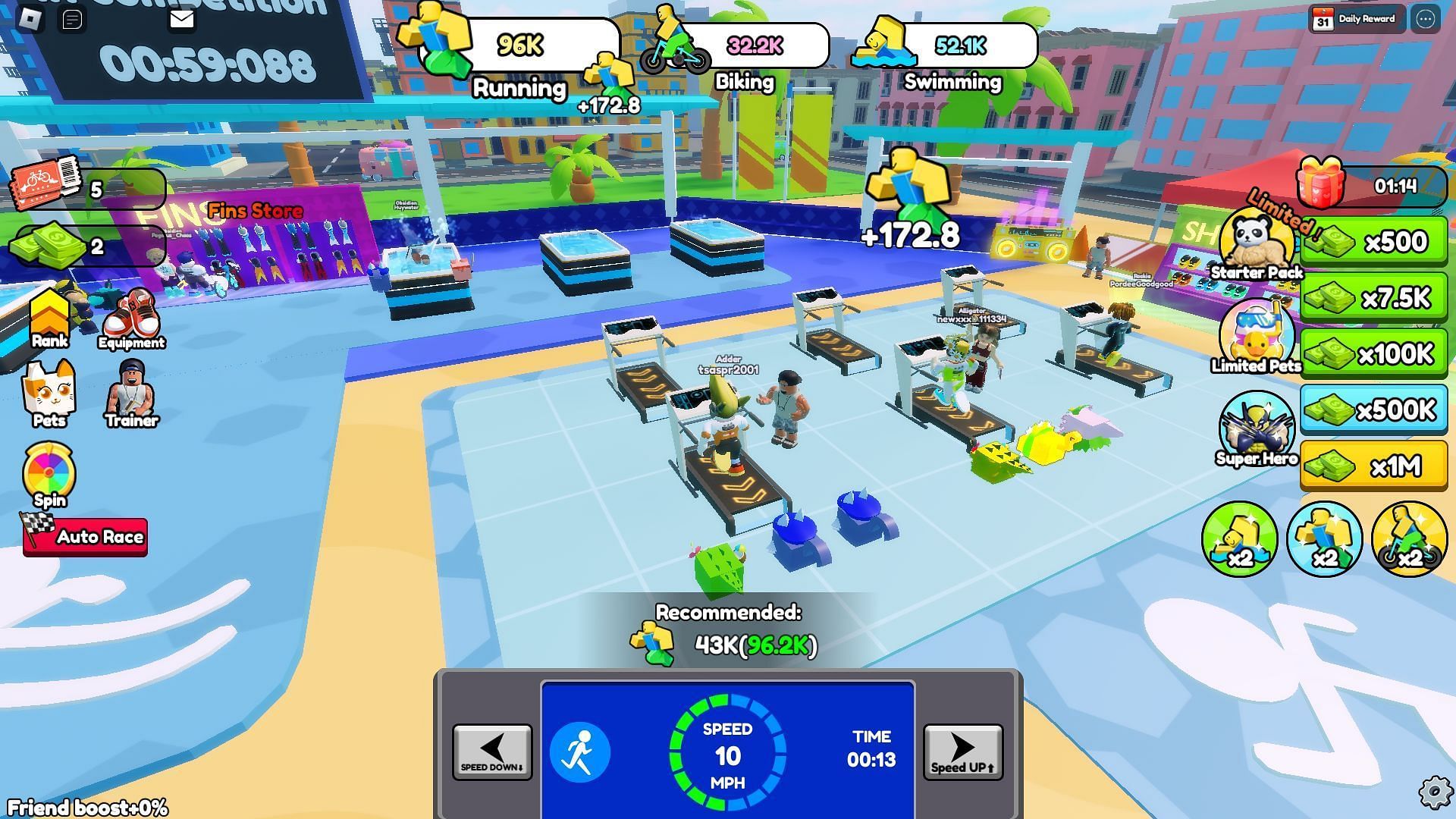 In this Roblox experience, your primary goal is to increase growth for running, biking, and swimming. To do this, you can use the treadmill, the stationary bicycle, and the pool. Remember, you will gain more growth if you increase the speed of the machine. However, doing so will cost you stamina and make you fall off the machine.