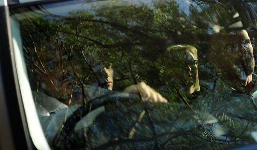 Oscar Pistorius pictured as he is driven away from the courthouse in Pretoria on February 22, 2013. Pistorius left the magistrate’s court in a silver sports utility vehicle pursued by photographers and cameramen on motorbikes, headed to a relative’s house.