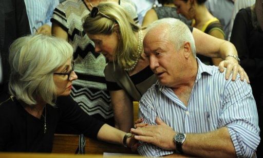 Henke Pistorius, the father of South African Olympic sprinter Oscar Pistorius, in the courthouse in Pretoria on February 22, 2013. The family of Oscar Pistorius will gather to meet him on Saturday, a day after his release on bail pending a murder trial over the fatal shooting of his girlfriend.