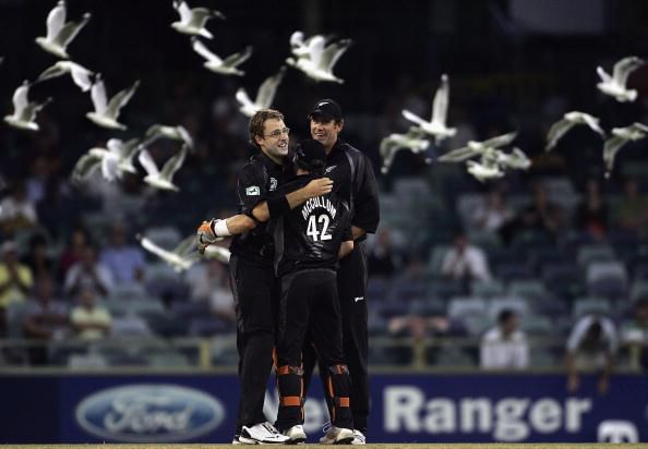 Daniel Vettori, Brendon McCullum and Jacob Oram