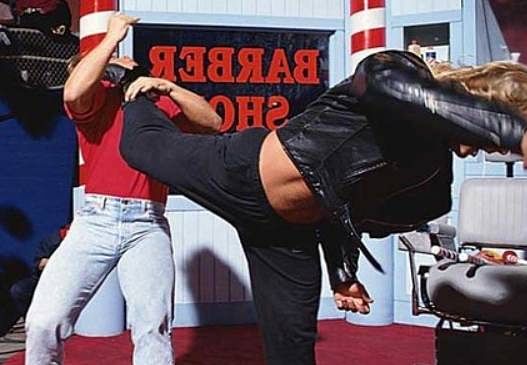 Even if the Rockers tag team wasn’t one of the all-time greats, for some reason this moment in WWE history is what a lot of people think of when they think of heel turns. The team, made up of Shawn Michaels and Michael Jannetty, was appearing on Brutus Beefcake’s “Barber Shop” segment when Michaels turned on Jannetty, Superkicking him through a window.