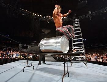Jeff, instead of grabbing the Money In The Bank briefcase in WrestleMania 23, choose to leg-drop from a ladder inside the ring to a stretched Edge, lying on top of another ladder balanced between the ring apron and the security barrier, outside.