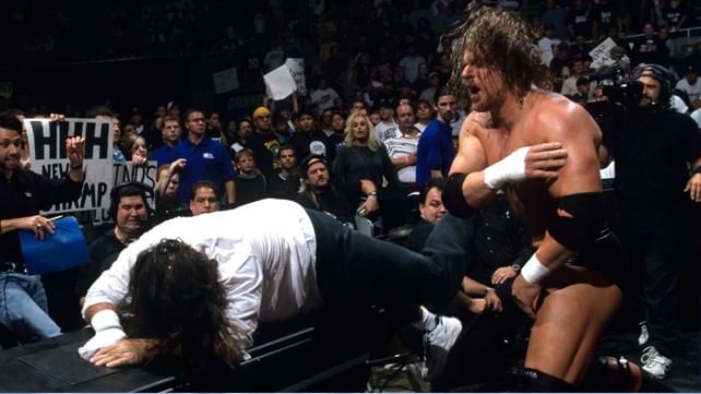 There are conspiracy theories about why Mankind won. One states that the reason he was even in the match is because Stone Cold didn’t want to put Triple H over. Another claims that Stone Cold had a torn ligament in his knee, which is why instead of a one-on-one match, Mankind was added to the match to ease the pain on the knee. Perhaps it is a bit of both.