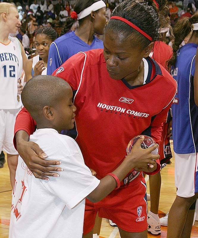 Sheryl Swoopes gave birth to her son in 1997,but returned to her team, the Houston Comets of the WNBA for the inaugural season. As a member of the Houston Comets, she has accumulated over 2,000 career points, 500 career rebounds, 300 career assists and 200 career steals. Her extraordinary scoring and defensive ability have made her the first three-time WNBA MVP (2000, 2002, 2005) and the first three-time WNBA Defensive player of the year (2000, 2002, 2003). Swoopes is a four-time WNBA champion (1997–2000).