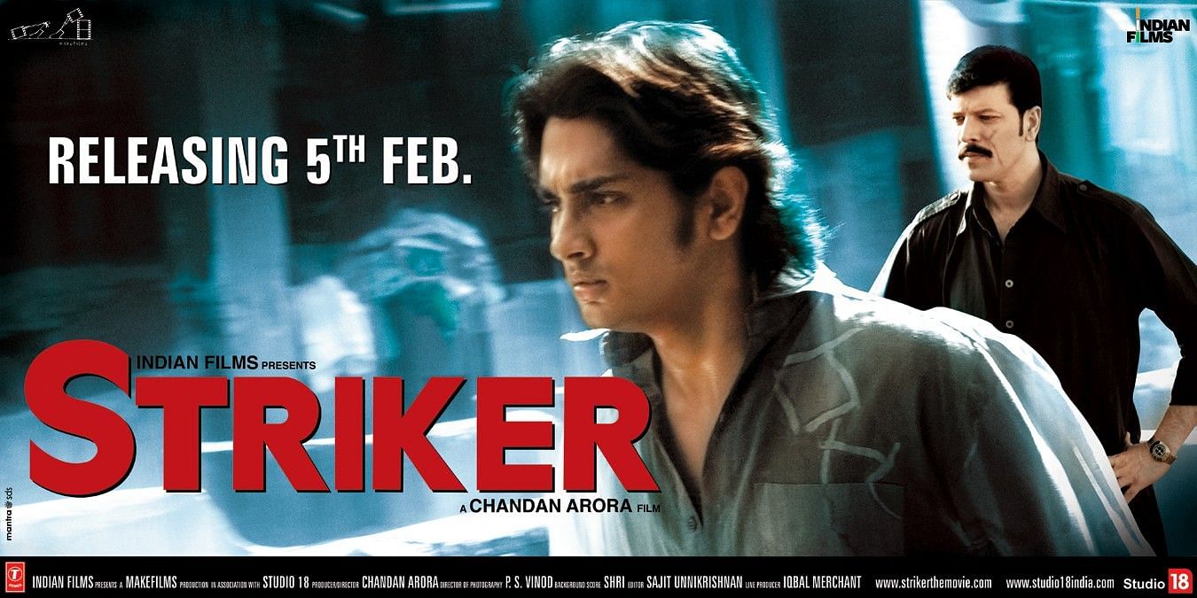Striker is an action-drama film written, directed and produced by Chandan Arora. It stars Siddharth, Padmapriya, Vidya Malvade, Nicolette Bird, Anupam Kher, Seema Biswas and Aditya Pancholi. The movie premiered on YouTube to become the first ever Indian film to premiere on YouTube internationally on the same day as its domestic theatrical release.