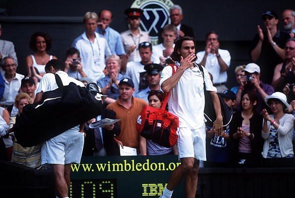 20) 2nd July 2001: In a proverbial changing of the guard battle of single-handers at Wimbledon, Federer dethrones seven-time champion Pete Sampras 7-6 5-7 6-4 6-7 7-5.