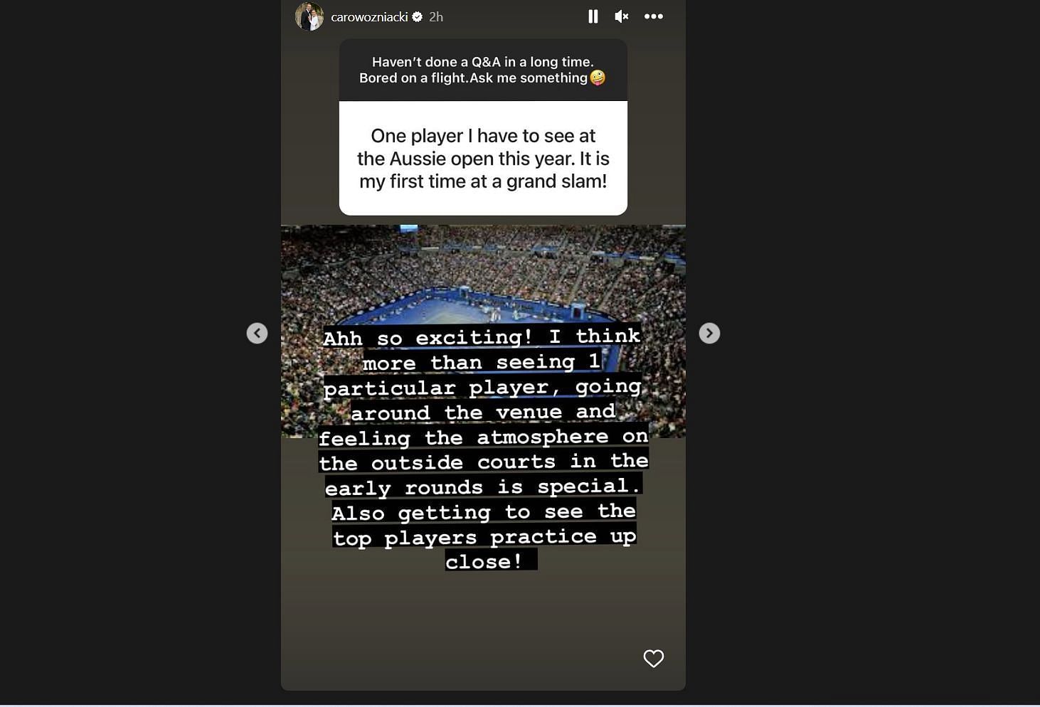 When asked by a fan which player they should catch live at the Australian Open this year, Wozniacki opined that watching early round matches on the outside courts, while also getting the chance to see top players practice closely, are experiences to cherish, rather than just watching one player.