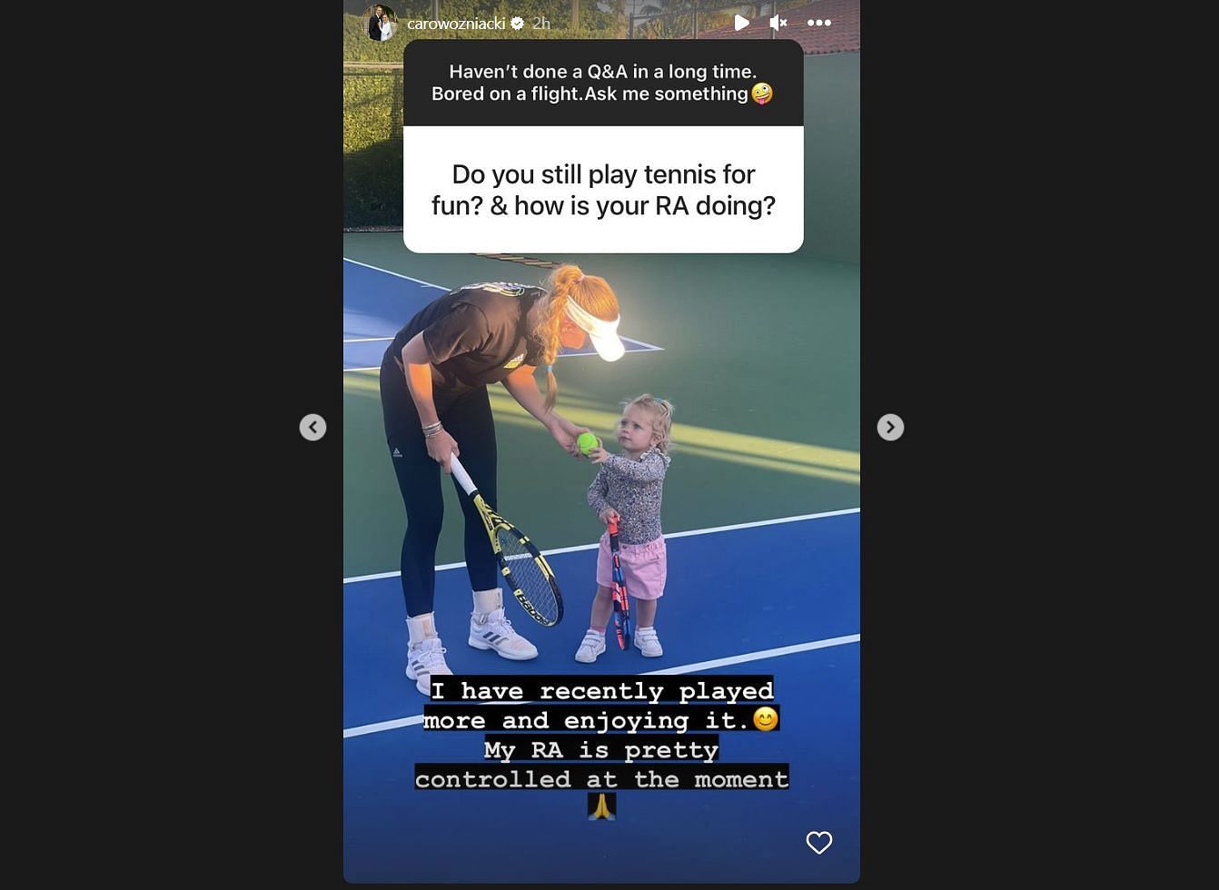 "I have recently played more and enjoying it. My RA is pretty controlled at the moment," Wozniacki said on Instagram.