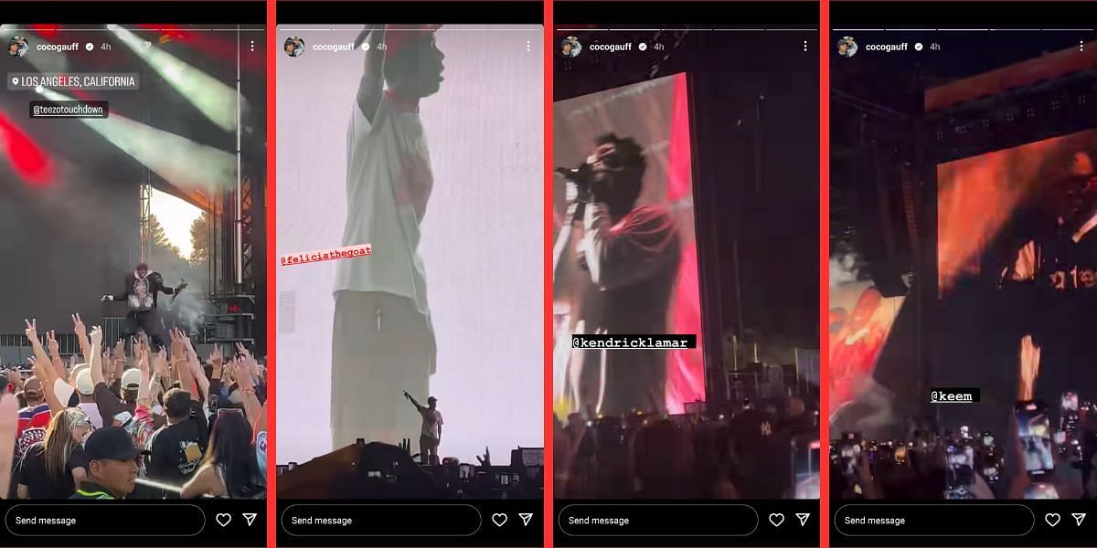 The 19-year-old posted many pictures of her attending the sets of different artists, such as Teezo Touchdown, Tyler, the Creator, Kendrick Lamar, and Baby Keem.