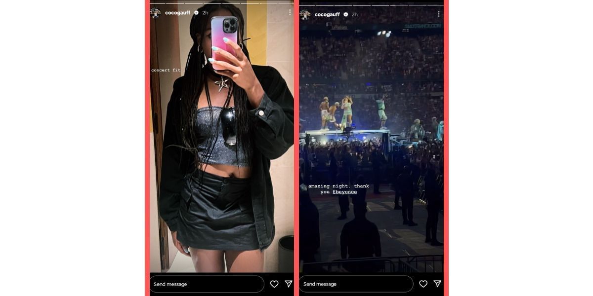 On May 26th, both players separately attended Beyonce's concert in Paris ahead of the French Open. They posted Instagram stories of themselves at the event. Gauff thanked Beyonce for an "amazing night".
