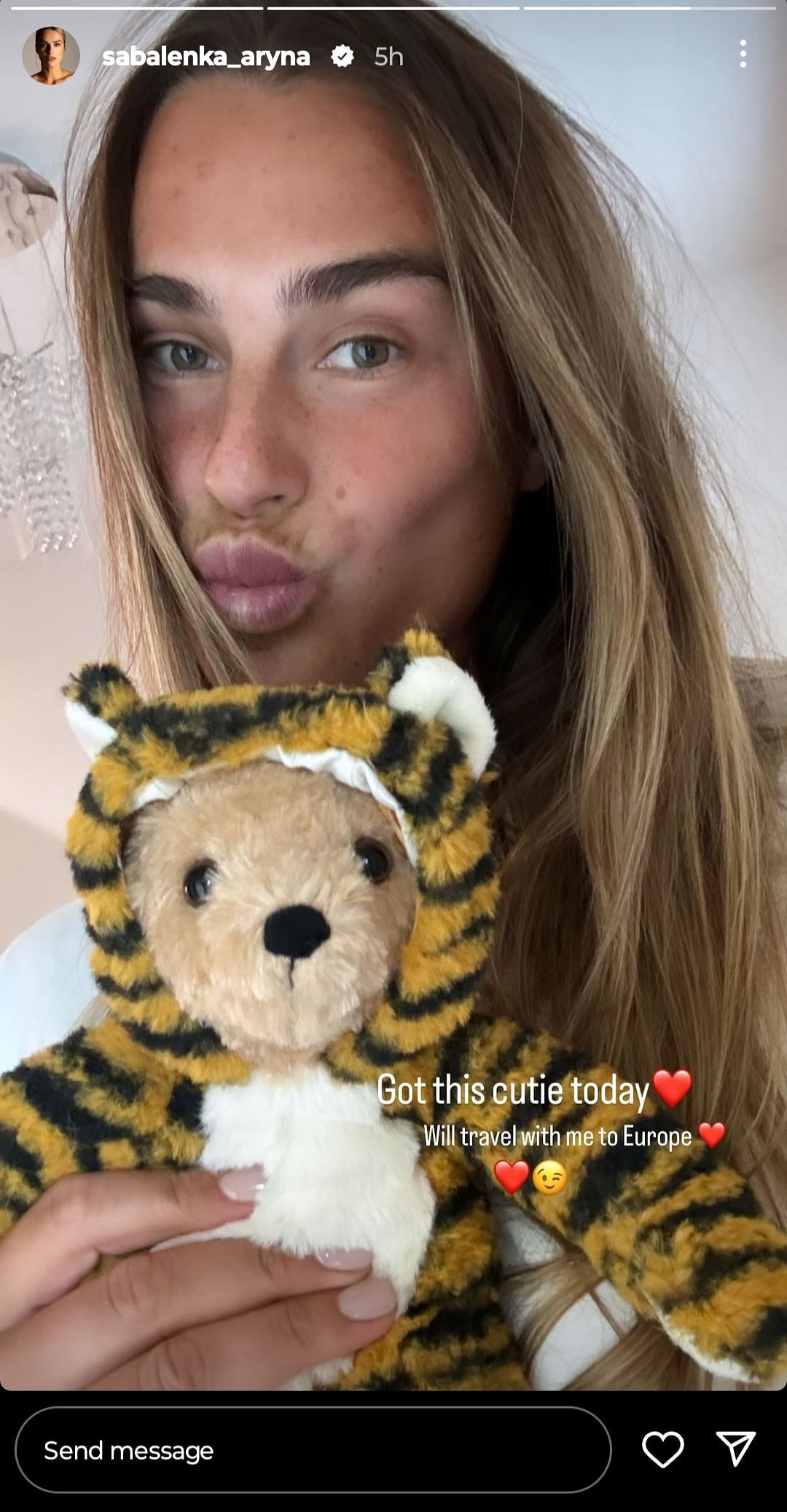 Sabalenka also shared a gift she received from one of her fans on social media. In this instance, it was a tiger plushie. The Belarusian said she would be taking it with her to Europe.