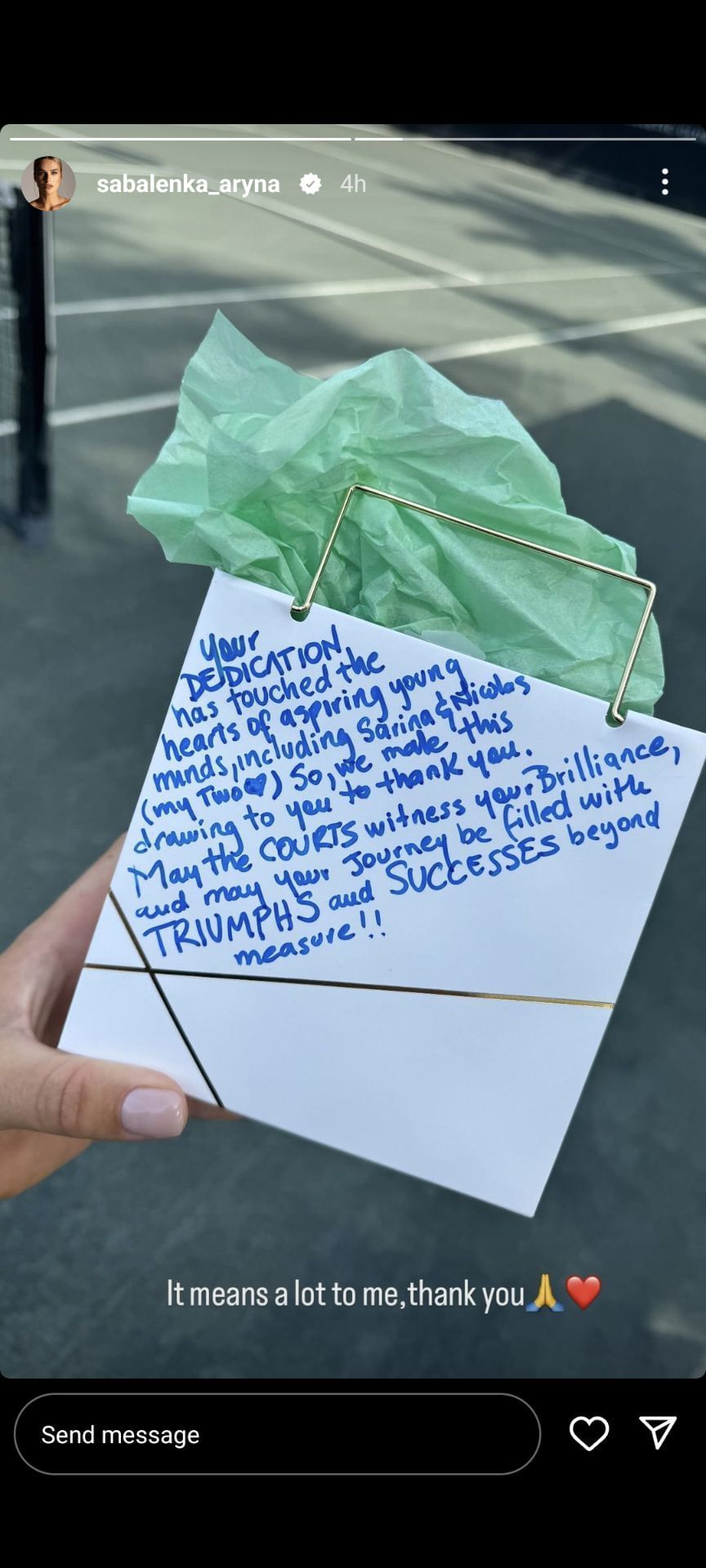 Recently, Sabalenka uploaded a note that was sent to her by a fan to her Instagram account. The note was a message of appreciation which thanked her for inspiring all the young people in the world through her unwavering determination on court. The fan wished her a lot of success in her future endeavors on the court.