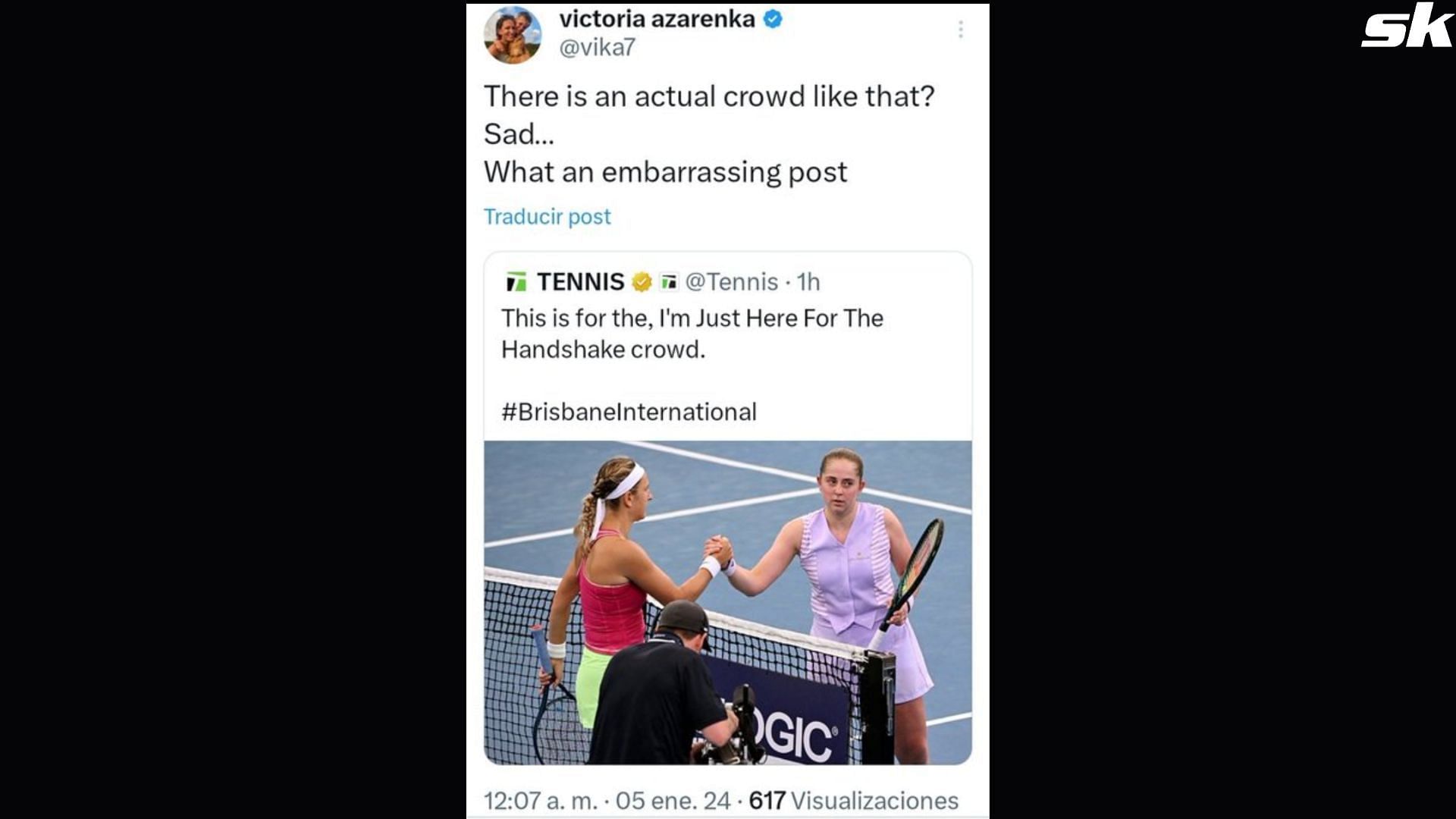 "There is an actual crowd like that? Sad... What an embarrassing post," Victoria Azarenka wrote in response.