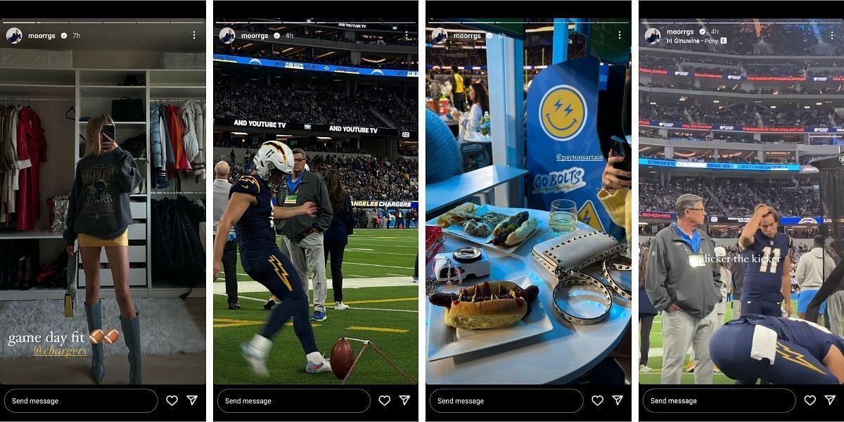 She captioned it "game day fit." Riddle also posted another picture of Cameron Dicker kicking the ball and captioned it "Dicker the Kicker."