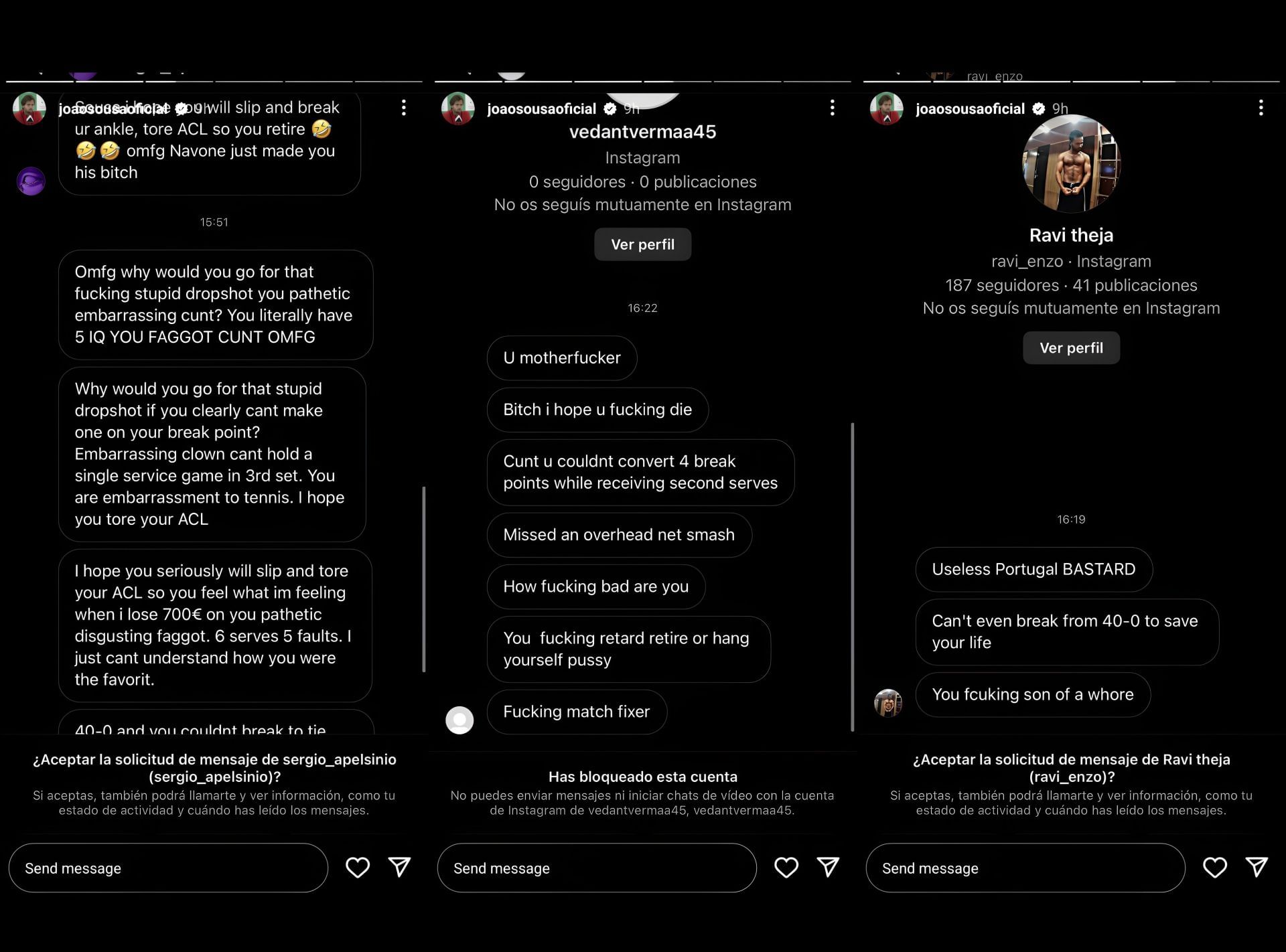 After his early departure, Joao Sousa took to social media to share the disturbing messages he had received. These messages were riddled with threats, insults, and abusive language.
