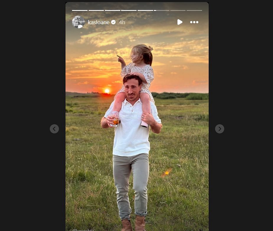 She also shared a picture of Brad Marchand walking with a drink in his hand and his daughter on his shoulders.