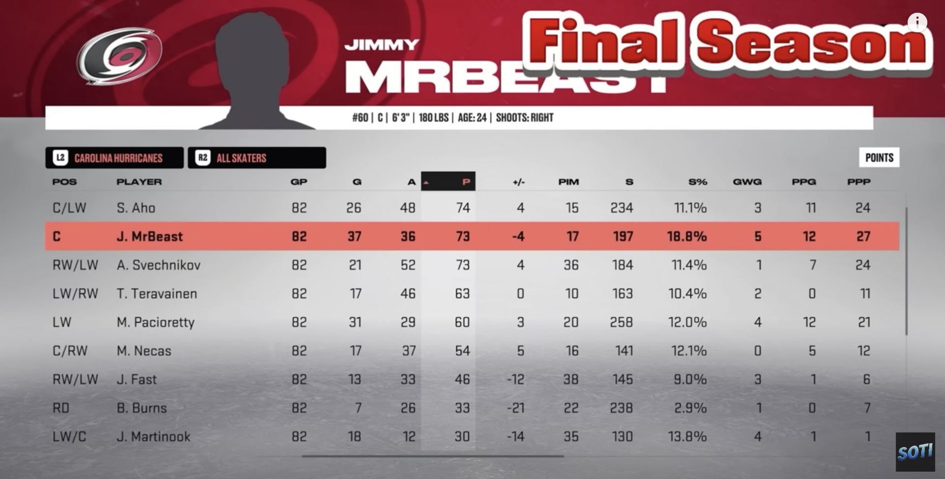 Despite MrBeast's extraordinary performance throughout the season, fate had a different outcome in store for him and the Hurricanes. The team fell short of making it to the playoffs, finishing 25th in the NHL standings. It was a disappointing blow for him, who had hoped to lift the Stanley Cup.