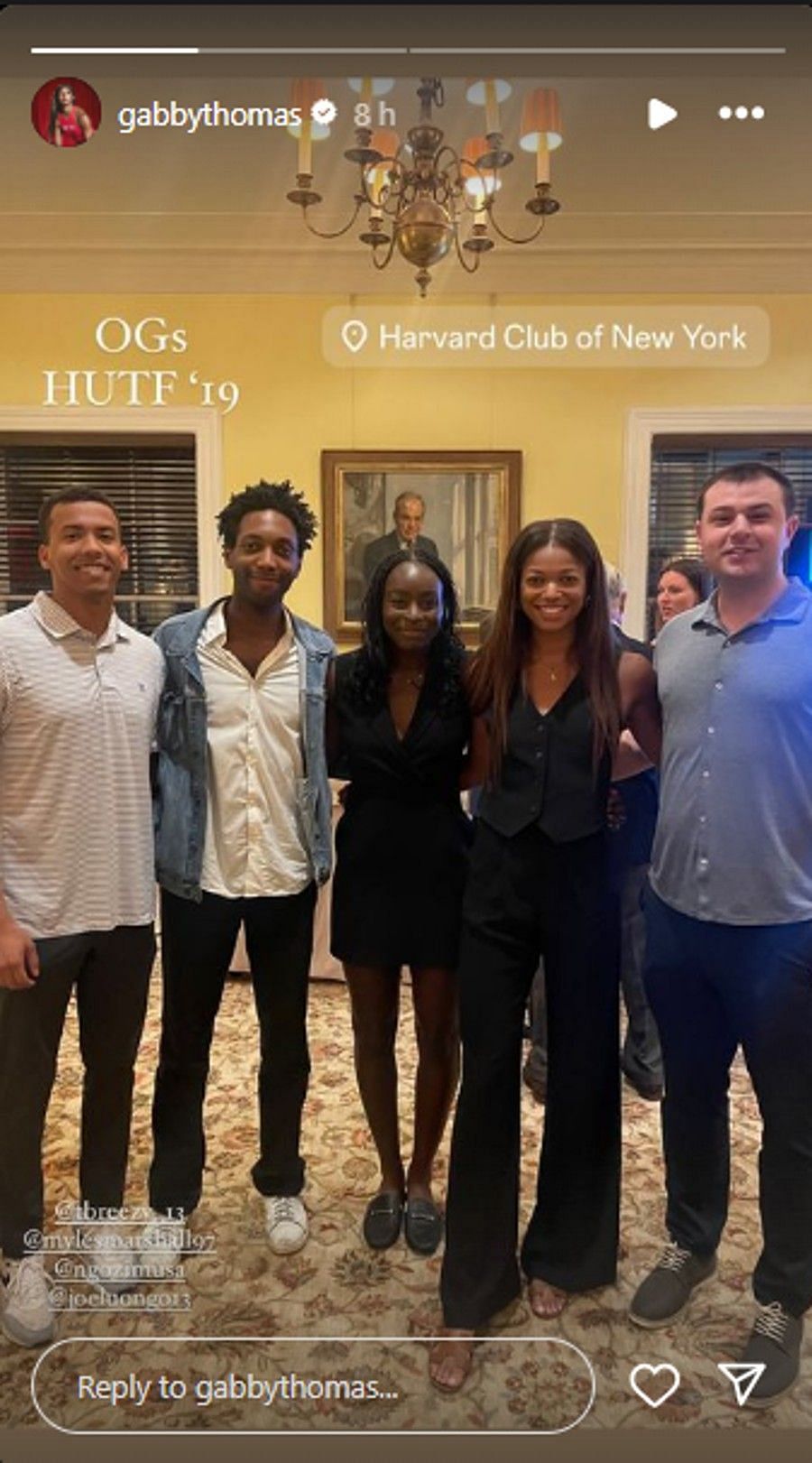 The Olympian was seen celebrating with her former team from 2019 at the Harvard Club of New York. She took to her Instagram stories to share a few pictures from the celebration and wrote,