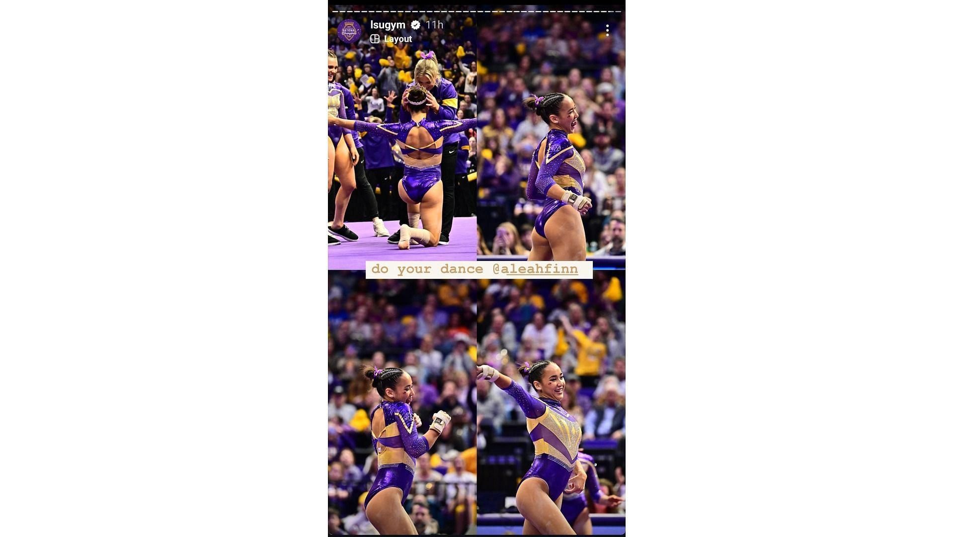 LSU's Instagram handle shared some pictures from the event in their stories. In the post, Dunne can be seen in her floor routine and also featured glimpses of Finnegan's celebrations during the meet.