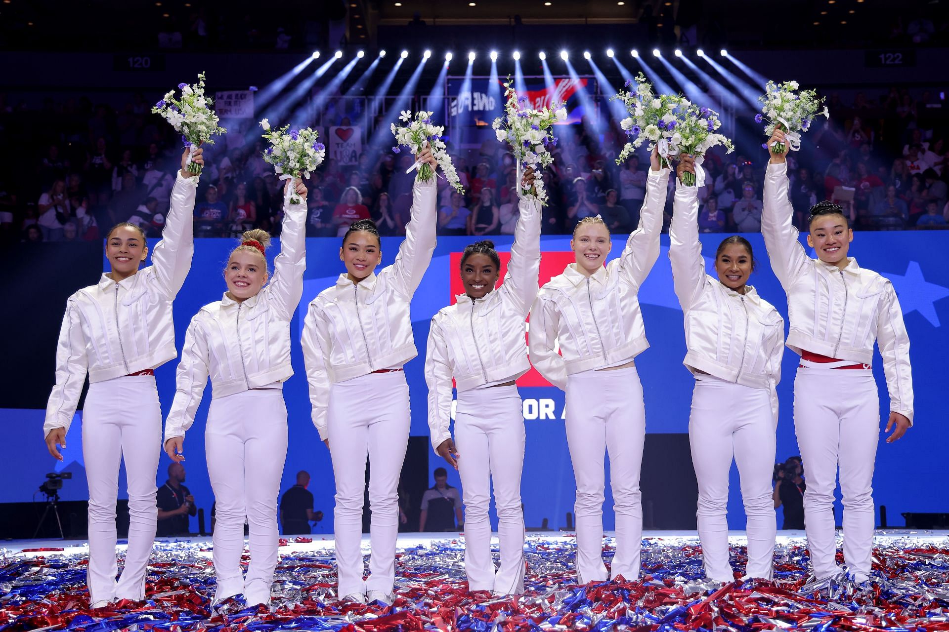 Other familiar faces on the team will be Tokyo Olympians Jordan Chiles and Jade Carey, who were fourth and fifth in the all-around behind Biles and Lee. Chiles managed a bronze on the floor, and was tied for fourth in the vault. Meanwhile, Carey, the 2020 floor exercise gold-medalist at Tokyo, finished with a silver in that event as well as the vault.