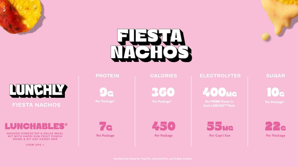 The official website of Lunchly provides a brief comparison of the nutritional values between its meal boxes and Lunchables'.