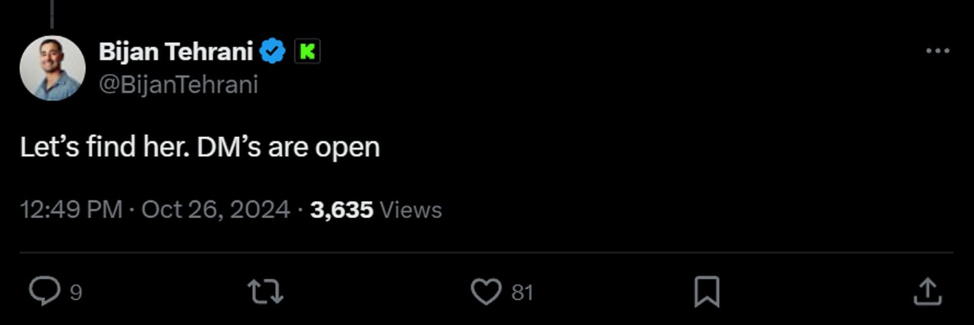 Bijan Tehrani also responded to the streamer’s ban, expressing that his DMs are open to anyone who can provide details about the homeless woman.