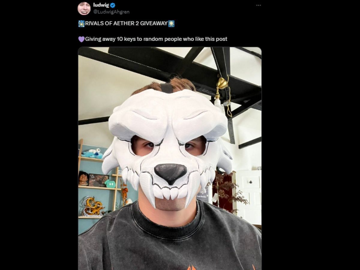 YouTube streamer Ludwig Ahgren took to his channel to respond to people calling him a "furry." For context, the streamer recently released his first-ever game called Rivals of Aether II, which included "bipedal, fully-like" creatures. To promote the game, Ludwig donned one of the masks of one of the in-game characters. This ended up making him a target for trolls and memes. Here is the picture: