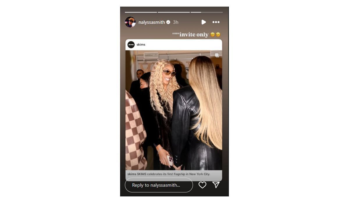 Sharing a post by SKIMS, that featured Carrington, on her story, Smith wrote a two-word caption which was followed by two head-shaking emojis: