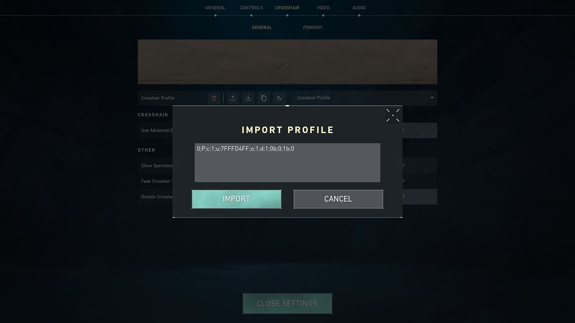 Following this, copy the crosshair code given above and paste it into the Import Profile box. Once the code has been pasted, click on the Import option and the required crosshair will be visible on the screen.