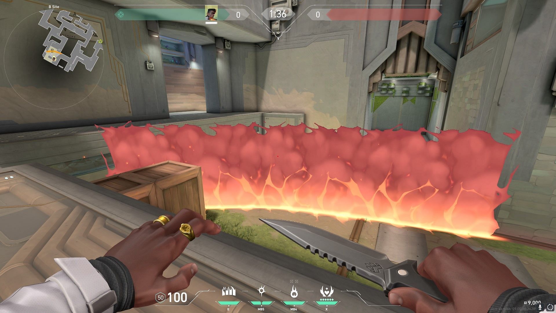 Burst on to the site with your team in the toe and get those aggressive frags. But one can't simply do that by standing out in the open. This is where your Blaze ability comes in clutch. Just throw up this flame wall as shown in the images below to take quick and easy map control.