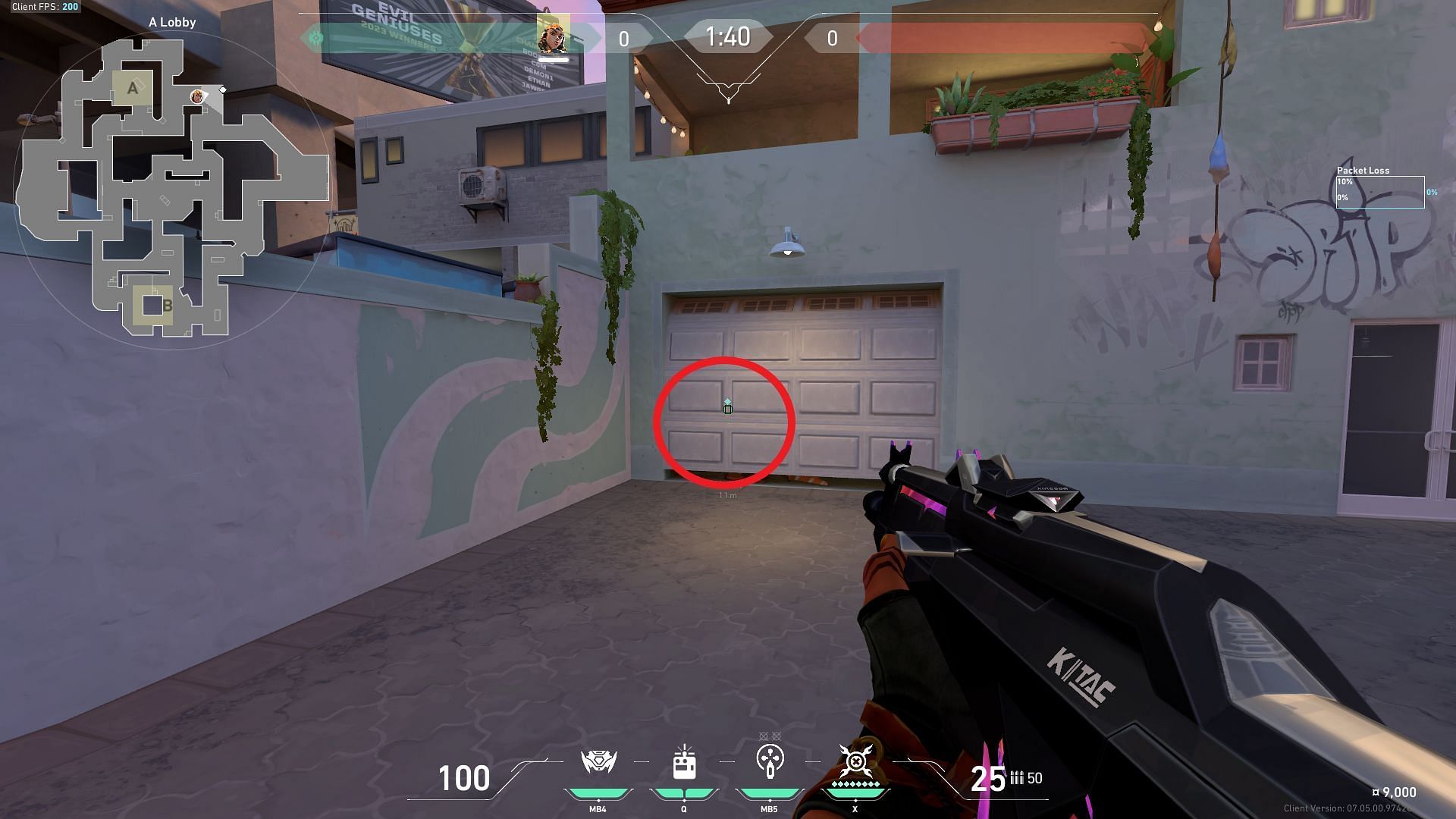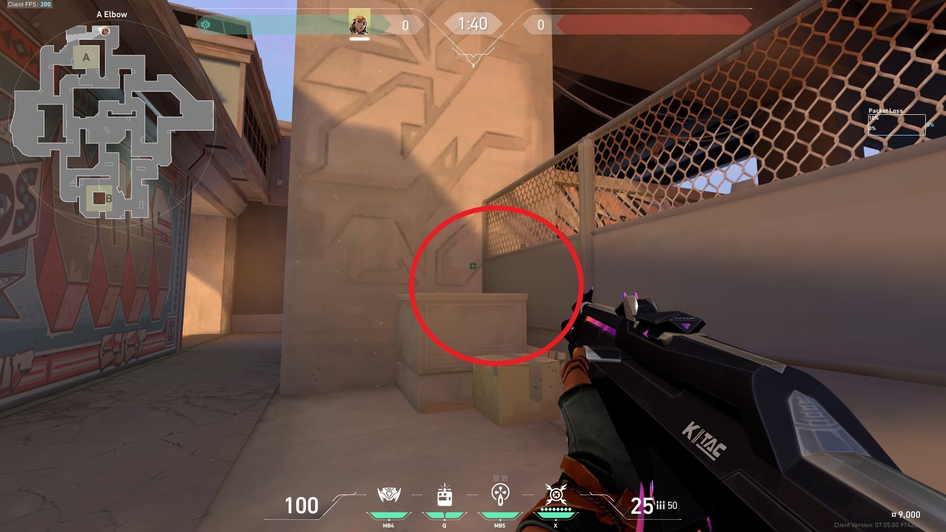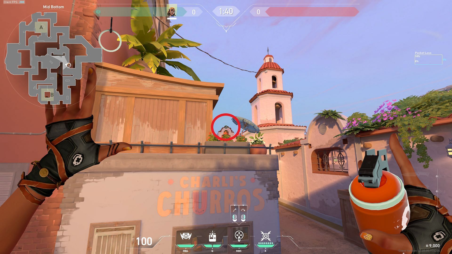 Position yourself near the A-Site Radianite box, as shown in the image. Look towards the Mid Tiles wall and start aiming towards the tower present on the roof.