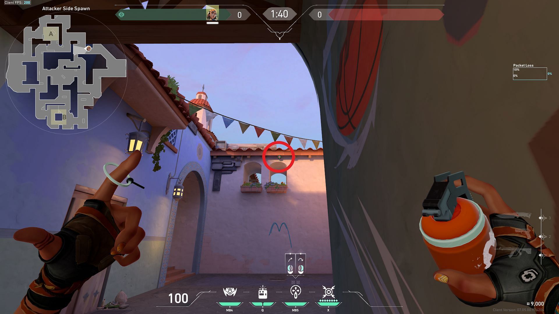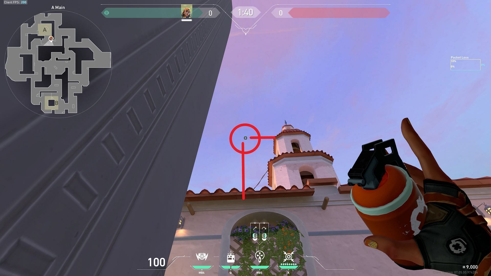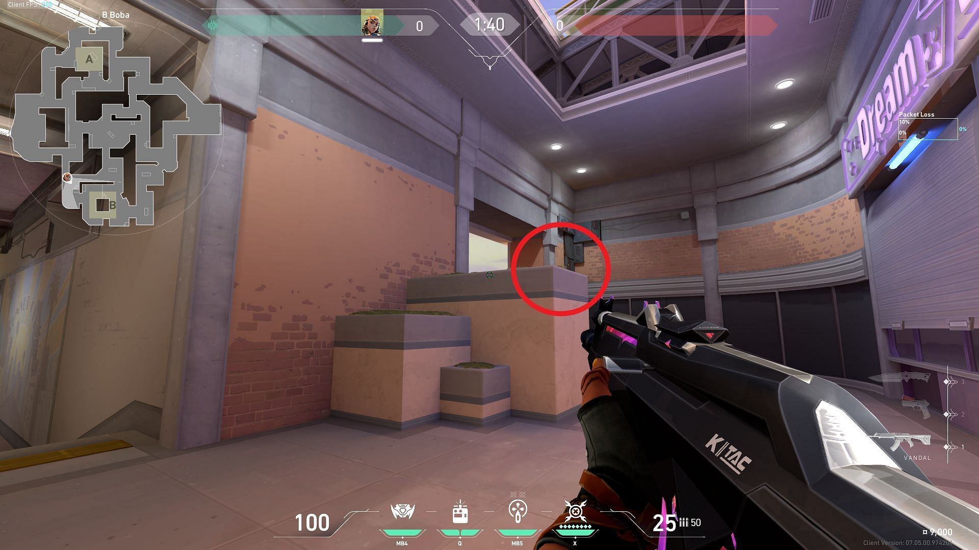 Position yourself near the A-Site Radianite box, as shown in the image. Look towards the Mid Tiles wall and start aiming towards the tower present on the roof.