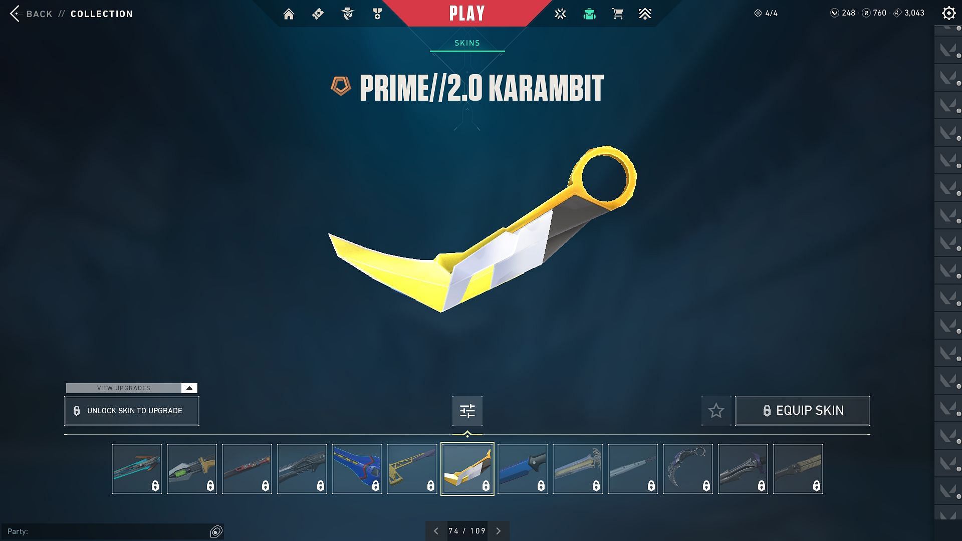 The Karambit comes at a price of 3550 VP and is not available in any other variants. While this price is higher than the other skins in the list, you can expect to get the Melee skin at a much cheaper price in the Valorant Night Market.