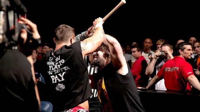 This was pretty wild. A bloody and violent warfare, Mick Foley could not have done any more to put Orton over. Foley tossed Orton off the stage through some tables, hit a vicious elbow drop and the involvement of barbwires ensured this match truly had it all.