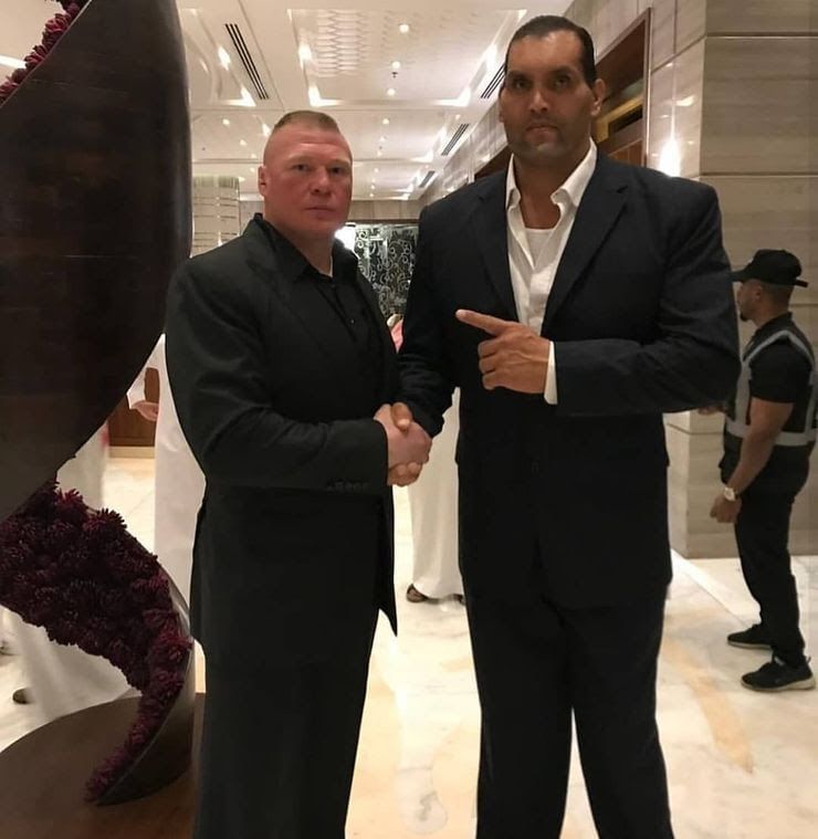 In this behind the scenes photo we see Brock Lesnar posing with former WWE Champion The Great Khali. This is one match fans from India never got to see but its still great to see the two behemoths in this picture.