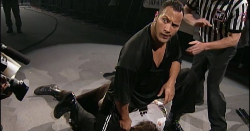 There was a spot during the match where both superstars were 12ft above the ground beneath the technical area. The Rock nailed a stiff punch on Mankind, causing him to fall on the electric circuits.