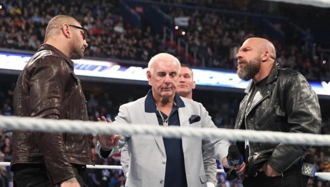 Ric Flair, Triple H, Batista, and Randy Orton came down to the ring to celebrate the monumental occasion. But things didn't go down well between two members of the faction.